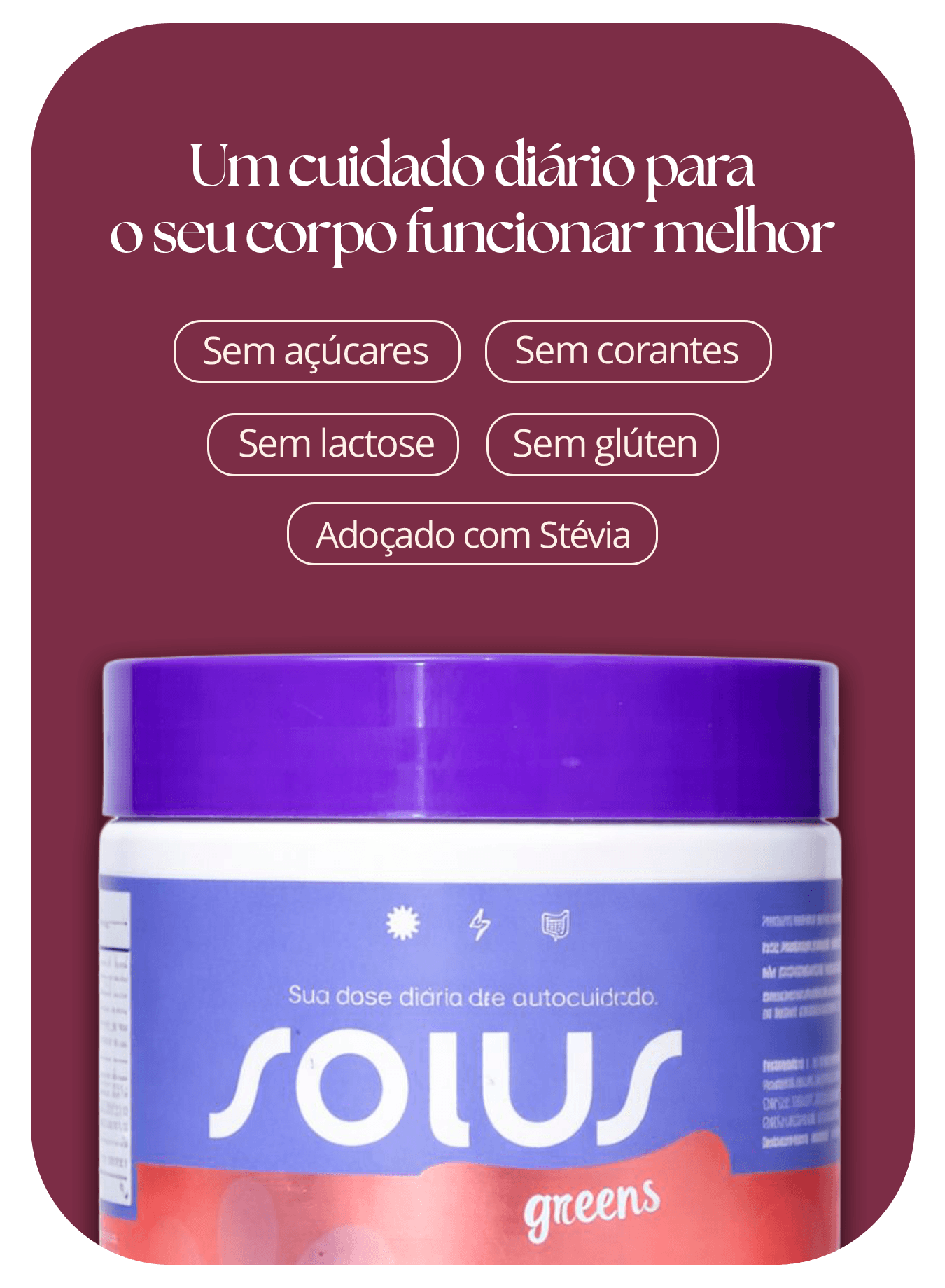 Solus Greens é um suplemento natural pensado para mulheres que querem se sentir bem no próprio corpo, com leveza, energia e equilíbrio no dia a dia.