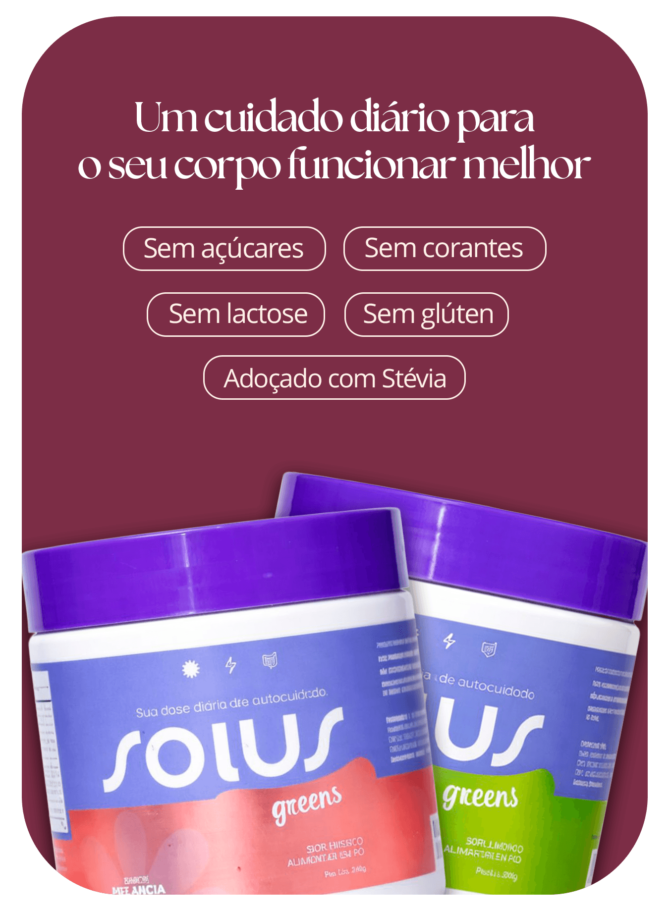 Solus Greens é um suplemento natural pensado para mulheres que querem se sentir bem no próprio corpo, com leveza, energia e equilíbrio no dia a dia.