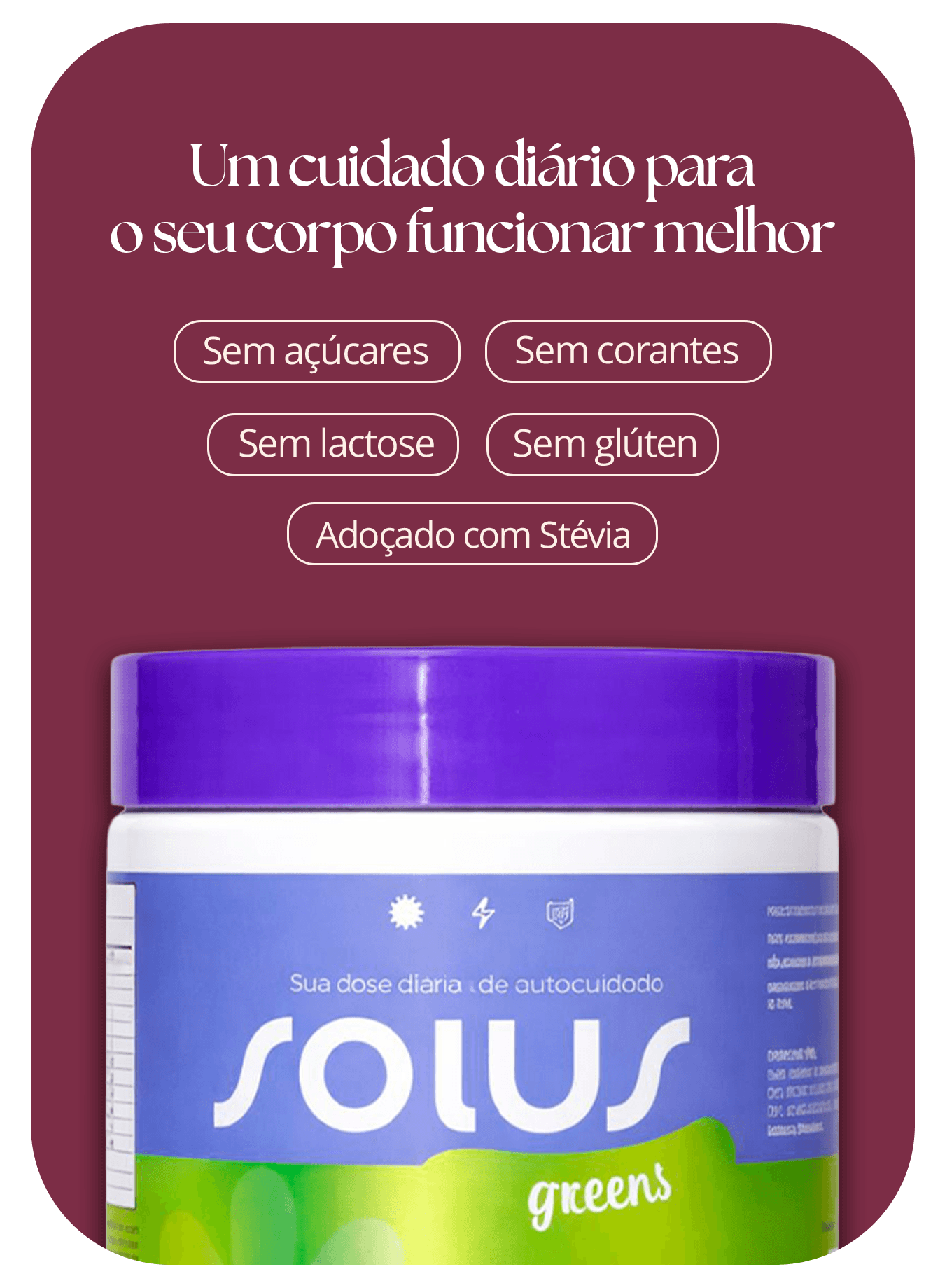 Solus Greens é um suplemento natural pensado para mulheres que querem se sentir bem no próprio corpo, com leveza, energia e equilíbrio no dia a dia.